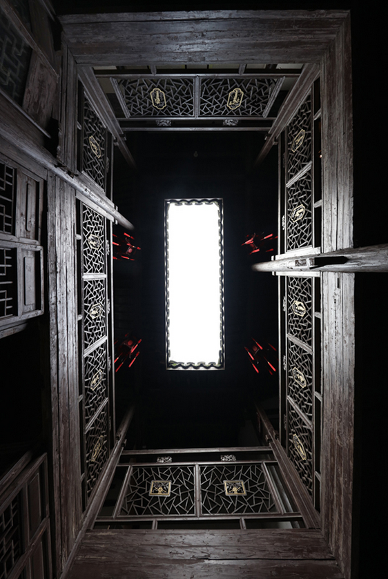 四面围合,方正等距;光晕昏昏,状如深井。——天井
